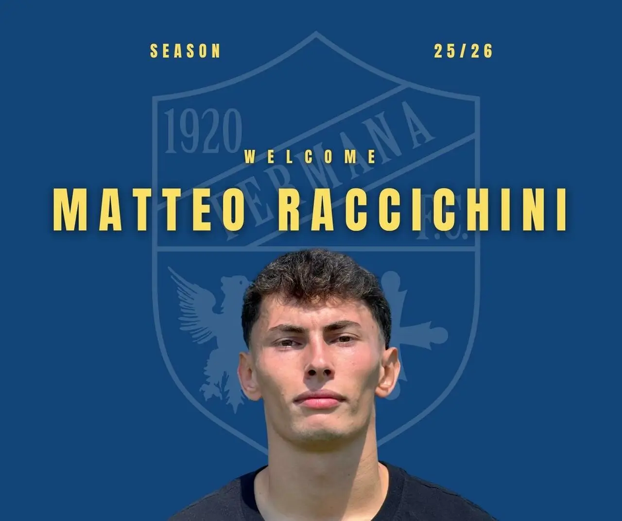 La Fermana FC comunica di aver acquisito le prestazioni sportive di Matteo Raccichini, che ha firmato fino al 30 giugno 2026 con il club canarino.